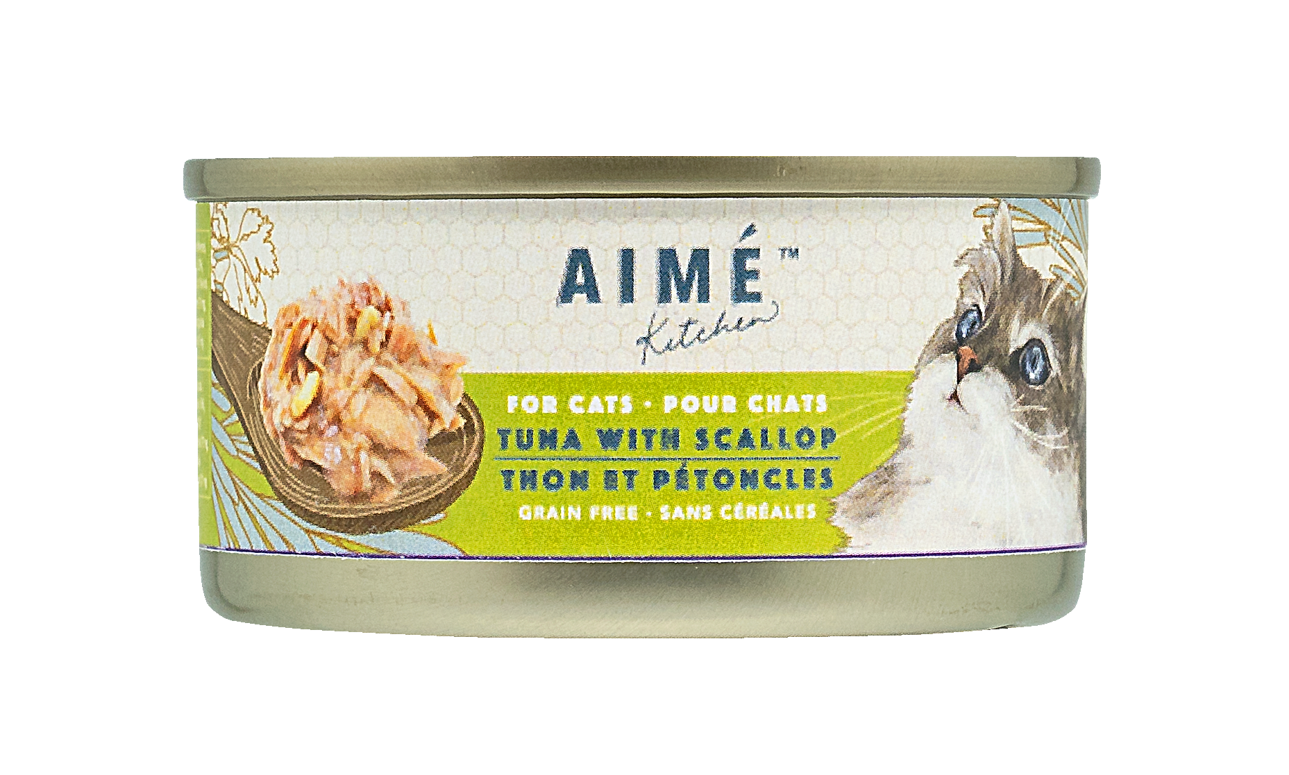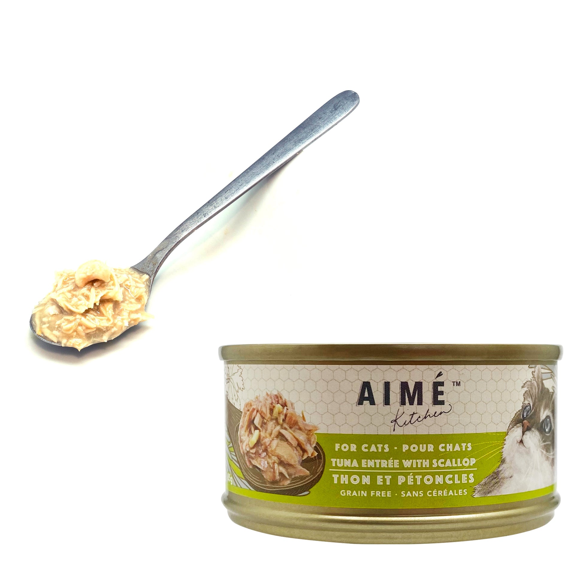 吞拿魚、水、扇貝、木薯澱粉、向日葵油、磷酸三鈣、槌樹豆膠、氯化膽鹼、牛磺酸和維生素