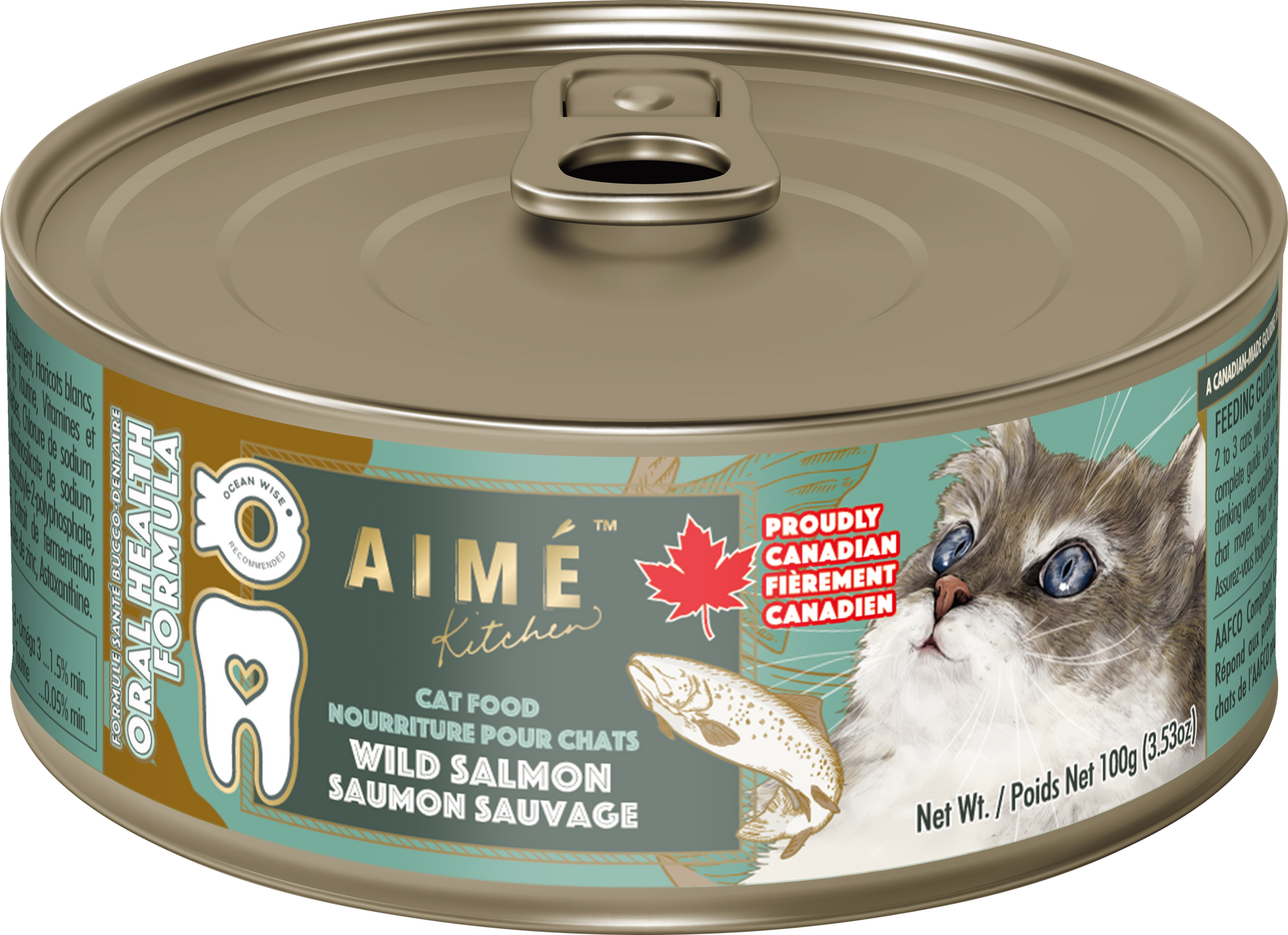 野生三文魚、加工所需水分、綠豌豆、陽光乾燥的紫花苜蓿、亞麻籽、海軍豆、牛磺酸、維生素和礦物質、綠扁豆、琼脂、草本混合物、氯化鈉、氯化膽鹼、尤卡根提取物、鈉鋁矽酸鹽、初乳、蔓越莓提取物、乳酸、L-抗壞血酸-2-聚磷酸鹽、干黑曲霉發酵提取物、干米曲霉發酵提取物、硫酸鈣、鋅蛋白質、蝦青素